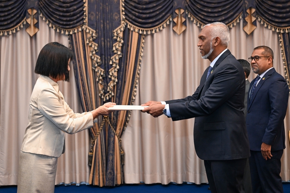 石神大使によるムイズ大統領への信任状捧呈
